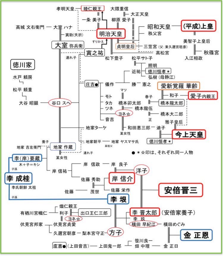 家系図を見れば天皇も金正恩も李家であることが一目瞭然です。